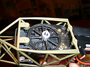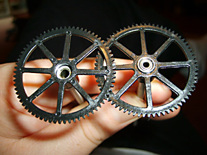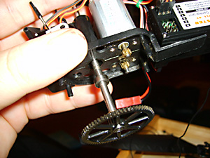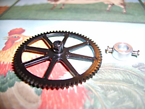 Replacing the Inner Shaft Next prize off the inner shaft gear. It’s a tight fit but it does just pull off. Note the hole in the drive cog shaft. When re-assembling, make sure one of the retaining screws locates in this lug and that it is properly aligned with the notch in the inner shaft. This makes sure that when tightened, the collar turns the inner shaft and does not just rotate. If your rotors don’t turn then this collar, or the one on the outer shaft have probably come loose.