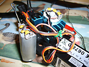 There are four screws holding the motors in place. I did not need to remove the wires from the 4 – 1 box. Take care not to apply too much pressure to any of the solder joints. Once both motors are out you can clip the heatsink into place. The larger end goes in front of the motors next to the 4 – 1 box. It just clips around one motor and then you push the other motor into it. (See Fig. 27 & 38 above). You can see how high it sits from the pictures. Re-locate the motors in position and apply some downwards pressure to ensure your screws can bite into them. Hey presto – heatsink installed. (See Fig. 39 & 40 below).