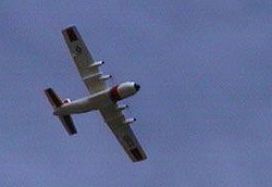 With careful use of the throttle, I managed to get over seven minutes duration out of the batteries. You really don't want to be blasting around the sky for the entire flight. Long slow passes up the strip do look most realistic. Do keep a check on the time however, as you will want to set her up for landing before the juice runs out. Our club flies from a tarmac runway, so I had to land her in the adjacent cornfield. The three-foot high wheat makes an ideal soft landing area and she came in without any problems at all. If you fly from a grass strip then you will be able to grease her into a fine landing.