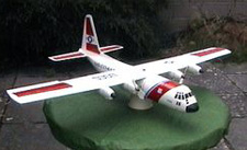 up. "They would be pleased with that landing at R.A.F. Lynham". The second flight is more nerve-racking than the first because you are now a lot more confident so you tend to push the test envelope a bit harder. Off she climbed again. "I will try to gain as much height as I can then we can test the stall" At a good height and into wind I started to pull back slowly on the stick, the nose started to raise higher and higher, "there she goes just dropped her nose after the stall and still remained in straight and level flight, that will do for me". Now the confidence was there a quick tight turn and I had dropped down to deck level. "Terrain hugging that's what she is made for" at the end of the pass pull back on the stick and I was top of the stack again. "I wonder if she will loop? I've got enough height here we go". I put the nose down at a gentle angle let the speed build up and pulled back on the stick. "Wow she did it, that was great" There was no significant dropping a wing at the top of the loop. "What next? " "I will try a roll a roll" I pulled back up to the top of the stack straight and level, nose down and hey presto a beautiful slow roll. There is nothing wrong with this one; it flies like a dream with no vices. The rest of the test flight consisted of tight turns, slow low passes and high-speed dives. The 'Herc' fills you full of confidence so I want to try a loop and roll out". The manoeuvre was started with a shallow dive pull up for the loop and 2 rolls out at the bottom. That was enough for today, turning back and lined up for landing and she came in sliding to a halt. Makes you feel good, an all that in 2 flights. Since this first PSS flight she has flown several time in varying conditions. Strength of wind is no problem; proving she is just as happy in a thermal as on the slope. 'Fat Albert' can be flown in conditions when all other aircraft were grounded. With the way our weather is reportedly going, with either too little or too much wind, the C130 will be able to fly whatever the conditions. The Hercules is no longer available