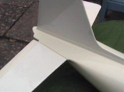 After the stabilisers and elevator have been inserted, secure them with polystyrene cement. Now you can join the elevator and stabilisers together via their appropriate hinges. The elevator is controlled via a push rod snake. This exits through a hole in the side of the fuselage. At first viewing, I thought that the elevator looked awfully narrow. My concerns were totally unfounded as the first flight soon proved. There is more than enough control authority and the size of the elevator is just right!