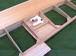A wing bolt bracket is bolted to a hardwood bearer and is then glued across the wing seat aperture. This is best done after completing the wing, so that you carefully line up the bolthole in the wing and the bearer in the fuselage. Apart from painting and fitting your elevator servo there's only the tail feathers to fit into the fuselage.